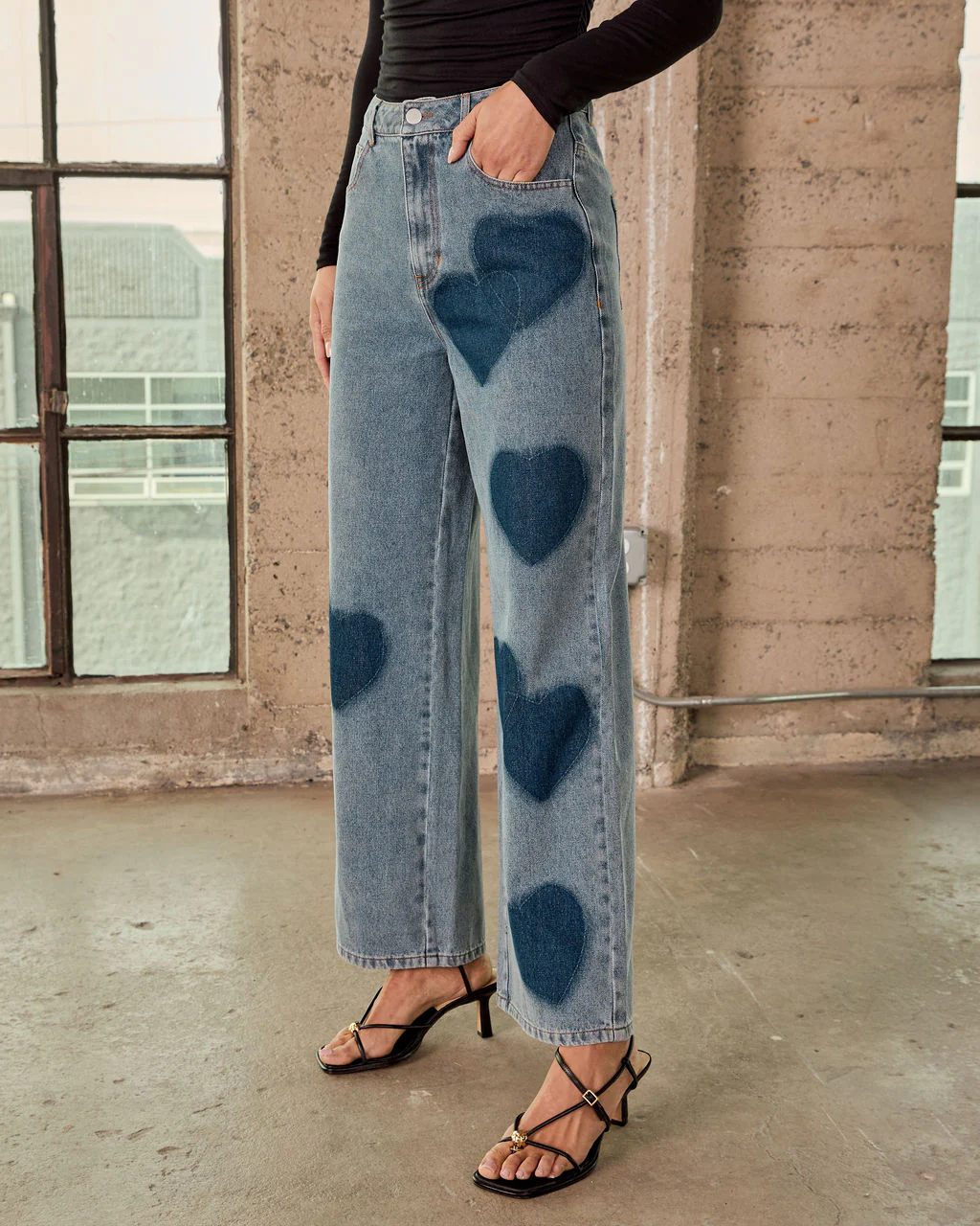 Just Lovers Heart Print Rigid Straight Leg Jeans