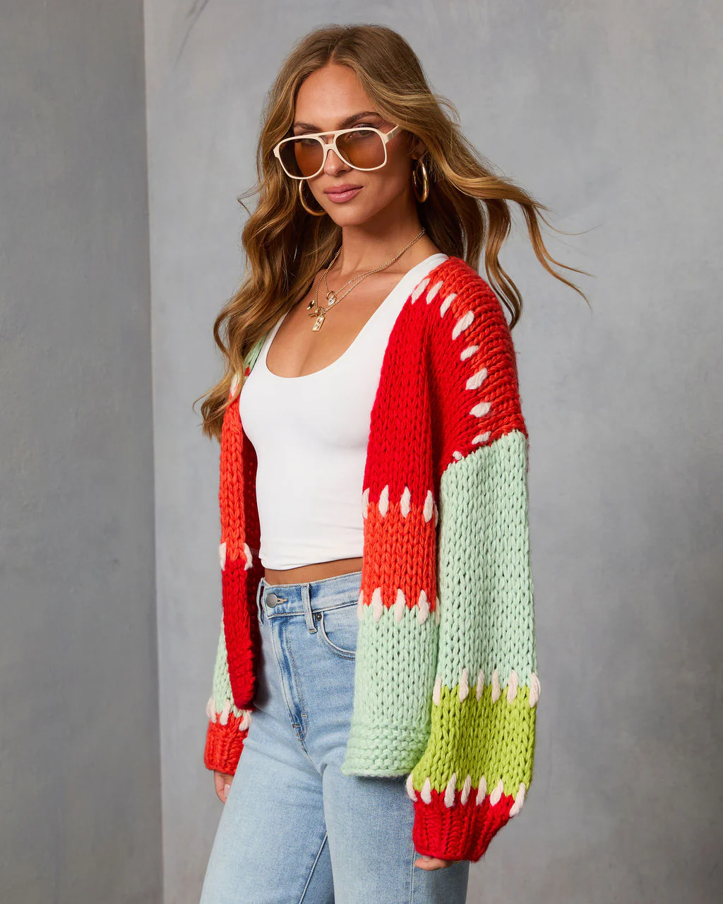 Soft Reset Stitched Color Block Chunky Knit Cardigan